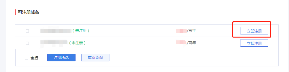 输入你要注册的域名,点击【立即注册】,页面跳转到订单信息,然后选择模板