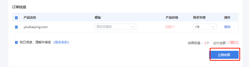 勾选我已阅读,理解并接受(服务条款),最后点击立即结算,